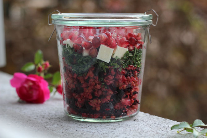 Randen-Couscous-Salat mit Granatapfelkernen und Feta